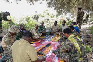 Cali Gaduud, 12-April-2025: Madaxweynaha Dowladda Hirshabeelle Mudane Ali Gudlawe Hussein oo ku sugan difaaca ugu dambeeyay ayaa warbixin ka dhageystay saraakiisha ciidamada qalabka sida iyo hoggaamiyeyaasha xaq-u-dirirka deegaanka.