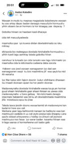 Waxa qoraay Xildhibaan Aadan Kaladire oo kamid ah Xilabaanada Baarlmaanka Hirshabeelle Radiohalgan.com