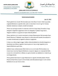 Sidoo kale, Jubbaland waxay digniin u dirtay dowladda Federaalka, iyadoo sheegtay in falalka noocan oo kale ah ay halis ku yihiin xasiloonida shacabka.