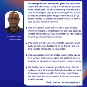 • Waa waajib diini ah in gacmaha laqabto siyaasiga ku Xadgudba arimaha lama taabtaanka ah ee dhawici kara jiritaanka umadda somaliyeed iyo tariiqdooda.